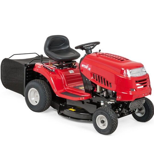 Een 48V Li-ion accu aangedreven elektrische tuintrekker met zijontlading en een maaibreedte van 98cm. Ideaal voor percelen van ongeveer 3500 m².