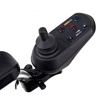 De opvouwbare elektrische rolstoel Smart chair is zeer eenvoudig te bedienen door de comfortabele stuurknuppel (joystick)